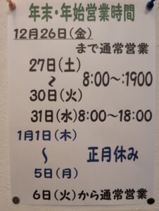29日(月)は特別営業いたします。年末の中では例年ですと混雑しにくい日かと思います